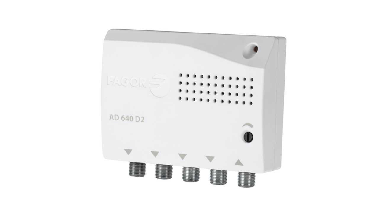 Το μοντέλο AD 640 D2 με 4 εξόδους, παρέχει Gain 18 dB (VHF/UHF), ρύθμιση κέρδους 16 dB και μέγιστη στάθμη εξόδου 100 dBμV (DIN 45004B), ενώ ο βαθμός θορύβου είναι 4 dB (VHF/UHF).